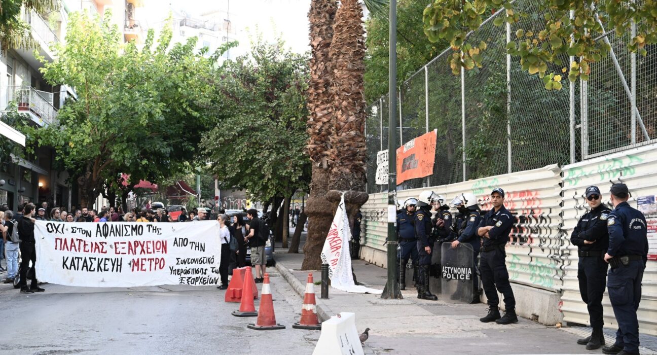 Ένταση επικράτησε σήμερα, Δευτέρα, το πρωί, στα Εξάρχεια μεταξύ αστυνομικών και κατοίκων της περιοχής, οι οποίοι αντιδρούν στο κόψιμο δένδρων στην πλατεία, λόγω εργασιών για το μετρό.