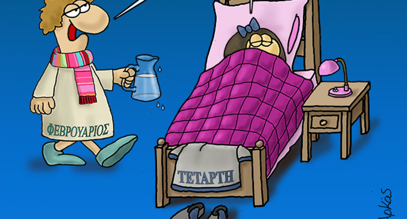 Την καθιερωμένη του «καλημέρα» είπε και σήμερα, Τετάρτη 11 Φεβρουαρίου, ο Αρκάς στους διαδικτυακούς του φίλους. Ειδικότερα, στο σημερινό του σκίτσο, ο Αρκάς σκιτσάρει την Τετάρτη, όπου δηλώνει άρνηση να σηκωθεί από το κρεβάτι, λόγω βροχής. «Δεν σηκώνομαι, βρέχει έξω». «Μέσα να δεις», της απαντά ο Φεβρουάριος. Την καθιερωμένη του «καλημέρα» είπε και σήμερα, Τετάρτη 11 Φεβρουαρίου, ο Αρκάς στους διαδικτυακούς του φίλους. Ειδικότερα, στο σημερινό του σκίτσο, ο Αρκάς σκιτσάρει την Τετάρτη, όπου δηλώνει άρνηση να σηκωθεί από το κρεβάτι, λόγω βροχής. «Δεν σηκώνομαι, βρέχει έξω». «Μέσα να δεις», της απαντά ο Φεβρουάριος. ΕΛΛΑΔΑ, Αρκάς, σκίτσο, σκιτσογράφος