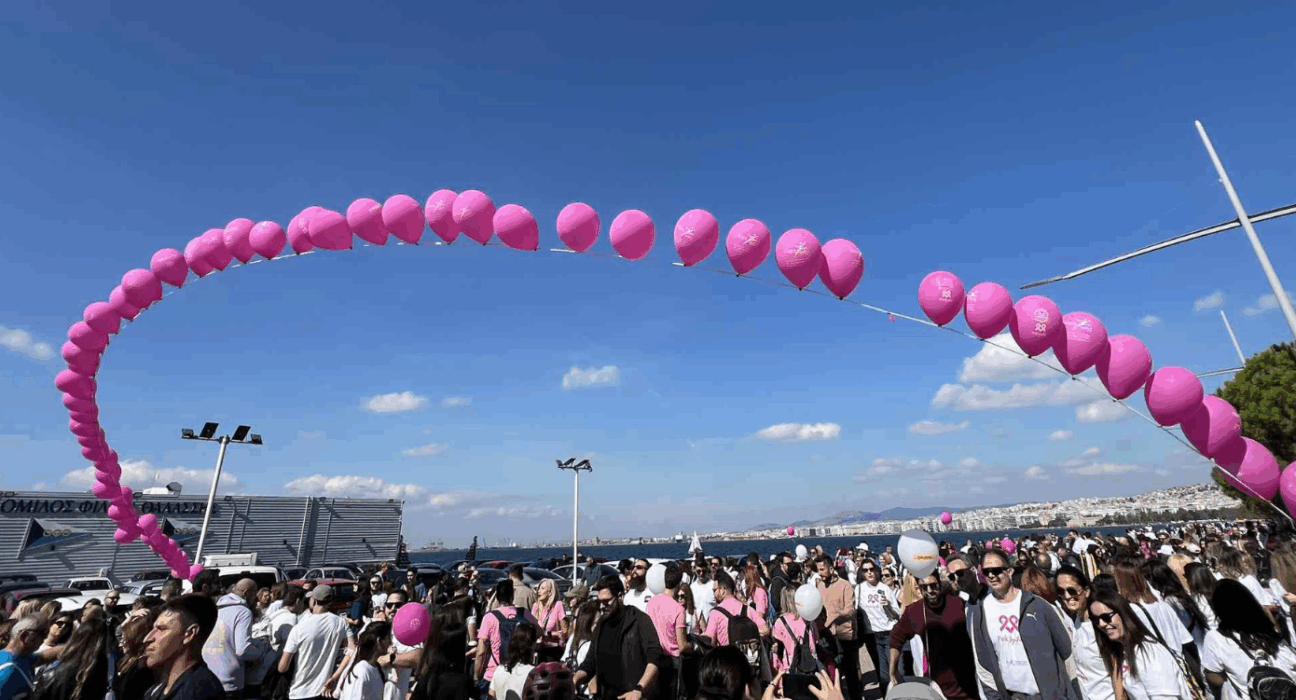 Θεσσαλονίκη – «Ποτάμι» ροζ ελπίδας: Χιλιάδες πολίτες ένωσαν τις φωνές τους ενάντια στον καρκίνο του μαστού