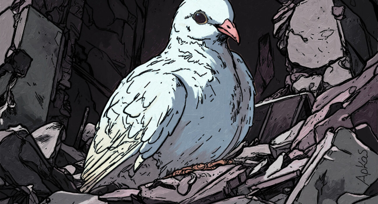 Με ένα λευκό περιστέρι μέσα στα ερείπια λέει «καλημέρα» ο Αρκάς