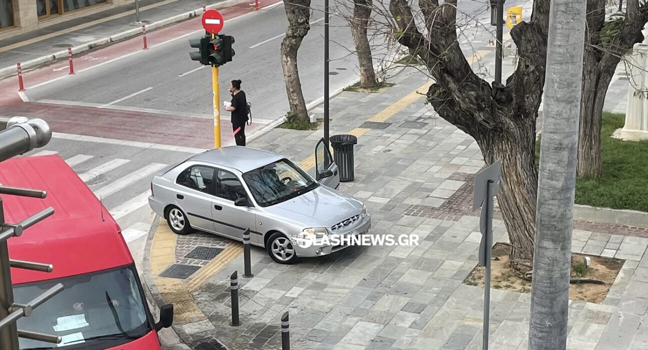 Οδηγός στα Χανιά άφησε το αυτοκίνητό του πάνω σε πεζοδρόμιο, ράμπα αναπήρων και διάδρομο τυφλών