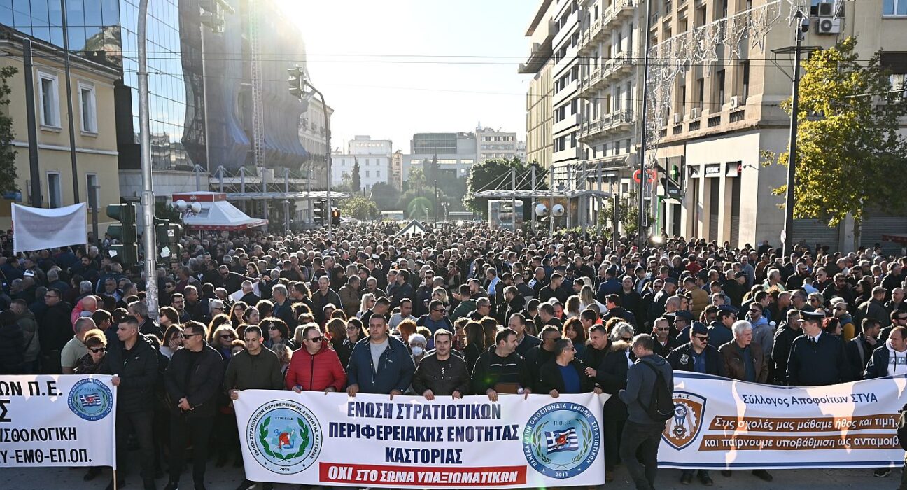 Με μεγάλη συμμετοχή και κυρίαρχο αίτημα την άμεση απόσυρση του νομοσχεδίου του Υπουργείου Εθνικής Άμυνας, βρίσκεται σε εξέλιξη αυτή την ώρα στα Προπύλαια η πανελλαδική συγκέντρωση εν ενεργεία και εν αποστρατεία στρατιωτικών. Δεκάδες Ενώσεις από όλη την Ελλάδα έδωσαν δυναμικό «παρών», αντιδρώντας στο πολυνομοσχέδιο που τέθηκε σε διαβούλευση παραμονή της εορτής των Ενόπλων Δυνάμεων και το οποίο, όπως καταγγέλλουν, προωθεί τον «σταδιοδρομικό μεσαίωνα» και απαξιώνει τα στελέχη, ειδικά τους υπαξιωματικούς. Μετά τη συγκέντρωση αναμένεται να ακολουθήσει πορεία προς τη Βουλή. «Πρωτόγνωρη κατάσταση» Μιλώντας στην κάμερα του Orange Press Agency, ο Πρόεδρος της Πανελλαδικής Ομοσπονδίας Ενώσεων Στρατιωτικών (ΠΟΕΣ), Υποπλοίαρχος Δημήτριος Μεθενίτης, περιέγραψε το κλίμα οργής που επικρατεί στο στράτευμα. «Δυστυχώς είναι η δεύτερη φορά σε πολύ σύντομο χρονικό διάστημα που βγαίνουμε στον δρόμο. Αυτό είναι αποτέλεσμα ενός πάρα πολύ κακού νομοσχεδίου, κατά την άποψή μας, το οποίο έχει καταθέσει ο Υπουργός Εθνικής Άμυνας» ανέφερε αρχικά ο κ. Μεθενίτης.Ο ίδιος τόνισε πως οι ρυθμίσεις του Υπουργείου έχουν προκαλέσει «τεράστιες αντιδράσεις», κάνοντας λόγο […] Με μεγάλη συμμετοχή και κυρίαρχο αίτημα την άμεση απόσυρση του νομοσχεδίου του Υπουργείου Εθνικής Άμυνας, βρίσκεται σε εξέλιξη αυτή την ώρα στα Προπύλαια η πανελλαδική συγκέντρωση εν ενεργεία και εν αποστρατεία στρατιωτικών. Δεκάδες Ενώσεις από όλη την Ελλάδα έδωσαν δυναμικό «παρών», αντιδρώντας στο πολυνομοσχέδιο που τέθηκε σε διαβούλευση παραμονή της εορτής των Ενόπλων Δυνάμεων και το οποίο, όπως καταγγέλλουν, προωθεί τον «σταδιοδρομικό μεσαίωνα» και απαξιώνει τα στελέχη, ειδικά τους υπαξιωματικούς. Μετά τη συγκέντρωση αναμένεται να ακολουθήσει πορεία προς τη Βουλή. «Πρωτόγνωρη κατάσταση» Μιλώντας στην κάμερα του Orange Press Agency, ο Πρόεδρος της Πανελλαδικής Ομοσπονδίας Ενώσεων Στρατιωτικών (ΠΟΕΣ), Υποπλοίαρχος Δημήτριος Μεθενίτης, περιέγραψε το κλίμα οργής που επικρατεί στο στράτευμα. «Δυστυχώς είναι η δεύτερη φορά σε πολύ σύντομο χρονικό διάστημα που βγαίνουμε στον δρόμο. Αυτό είναι αποτέλεσμα ενός πάρα πολύ κακού νομοσχεδίου, κατά την άποψή μας, το οποίο έχει καταθέσει ο Υπουργός Εθνικής Άμυνας» ανέφερε αρχικά ο κ. Μεθενίτης.Ο ίδιος τόνισε πως οι ρυθμίσεις του Υπουργείου έχουν προκαλέσει «τεράστιες αντιδράσεις», κάνοντας λόγο ΕΛΛΑΔΑ