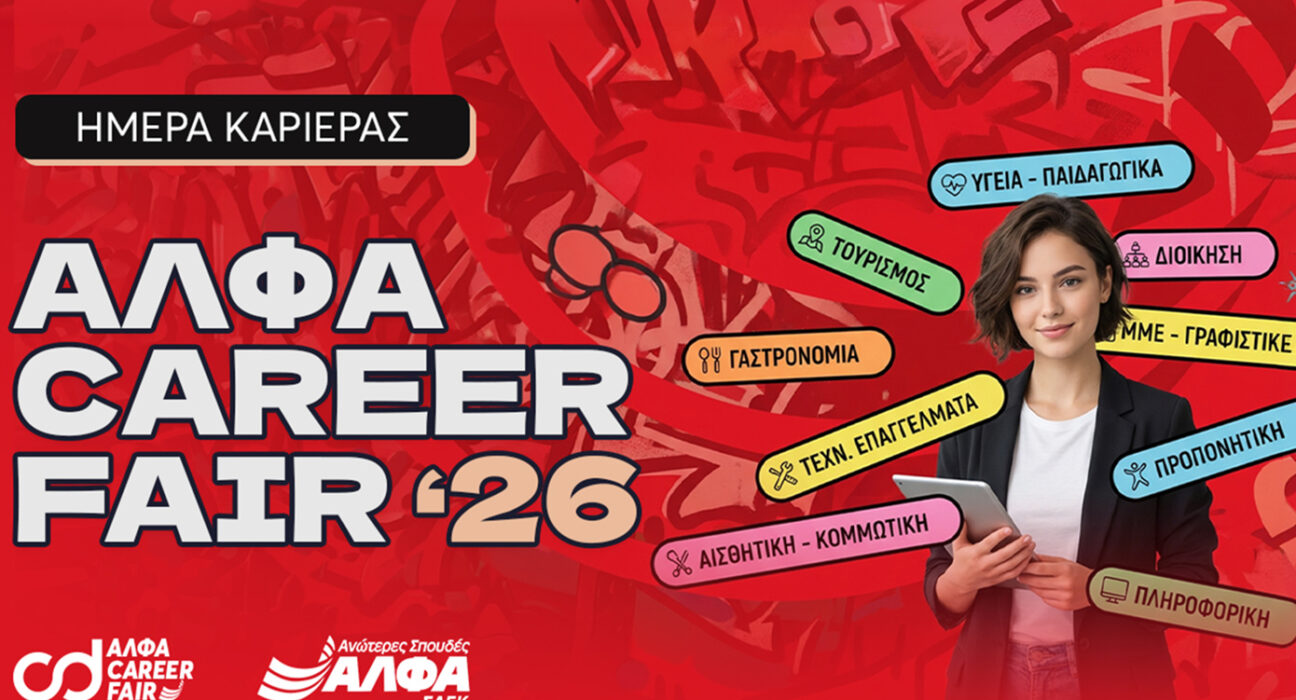 Με σταθερό γνώμονα την επαγγελματική αποκατάσταση και επιτυχία των αποφοίτων τους και το ισχυρότερο Job Centre στη διάθεσή τους, οι Ανώτερες Σχολές ΑΛΦΑ Θεσσαλονίκης διοργανώνουν το ΑΛΦΑ Career Fair, τη Δευτέρα 2 Μαρτίου και ώρες 10.00-14.00 στο Electra Palace (Αριστοτέλους 9). Μια Ημέρα Καριέρας όπου -και φέτος- θα δώσουν το «παρών» οι πλέον «δυνατές» εθνικές και πολυεθνικές επιχειρήσεις με έναν βασικό στόχο: τη δικτύωση των σπουδαστών και αποφοίτων της ΣΑΕΚ ΑΛΦΑ Θεσσαλονίκης και την ενίσχυση των επαγγελματικών τους προοπτικών! Εξειδικευμένοι σύμβουλοι, HR Managers και recruiters των επιχειρήσεων που θα συμμετάσχουν στο ΑΛΦΑ Career Fair ’26, θα αναζητήσουν νέους συνεργάτες μεταξύ των ανταγωνιστικά καταρτισμένων σπουδαστών και αποφοίτων της πρωτοπόρου ΣΑΕΚ στη Θεσσαλονίκη, οι οποίοι αποτελούν σταθερά, κάθε χρόνο, τη Νο1 επιλογή της αγοράς εργασίας! Οι σπουδαστές της ΣΑΕΚ ΑΛΦΑ στη Θεσσαλονίκη, αλλά και απόφοιτοι άλλων σχολών που αναζητούν δουλειά, θα έχουν την ευκαιρία να δώσουν interviews για πρακτική και εργασία σε μεγάλες επιχειρήσεις και φορείς των πλέον περιζήτητων επαγγελματικών κλάδων της αγοράς: Οι […] Με σταθερό γνώμονα την επαγγελματική αποκατάσταση και επιτυχία των αποφοίτων τους και το ισχυρότερο Job Centre στη διάθεσή τους, οι Ανώτερες Σχολές ΑΛΦΑ Θεσσαλονίκης διοργανώνουν το ΑΛΦΑ Career Fair, τη Δευτέρα 2 Μαρτίου και ώρες 10.00-14.00 στο Electra Palace (Αριστοτέλους 9). Μια Ημέρα Καριέρας όπου -και φέτος- θα δώσουν το «παρών» οι πλέον «δυνατές» εθνικές και πολυεθνικές επιχειρήσεις με έναν βασικό στόχο: τη δικτύωση των σπουδαστών και αποφοίτων της ΣΑΕΚ ΑΛΦΑ Θεσσαλονίκης και την ενίσχυση των επαγγελματικών τους προοπτικών! Εξειδικευμένοι σύμβουλοι, HR Managers και recruiters των επιχειρήσεων που θα συμμετάσχουν στο ΑΛΦΑ Career Fair ’26, θα αναζητήσουν νέους συνεργάτες μεταξύ των ανταγωνιστικά καταρτισμένων σπουδαστών και αποφοίτων της πρωτοπόρου ΣΑΕΚ στη Θεσσαλονίκη, οι οποίοι αποτελούν σταθερά, κάθε χρόνο, τη Νο1 επιλογή της αγοράς εργασίας! Οι σπουδαστές της ΣΑΕΚ ΑΛΦΑ στη Θεσσαλονίκη, αλλά και απόφοιτοι άλλων σχολών που αναζητούν δουλειά, θα έχουν την ευκαιρία να δώσουν interviews για πρακτική και εργασία σε μεγάλες επιχειρήσεις και φορείς των πλέον περιζήτητων επαγγελματικών κλάδων της αγοράς: Οι ΕΚΠΑΙΔΕΥΣΗ, ΕΛΛΑΔΑ