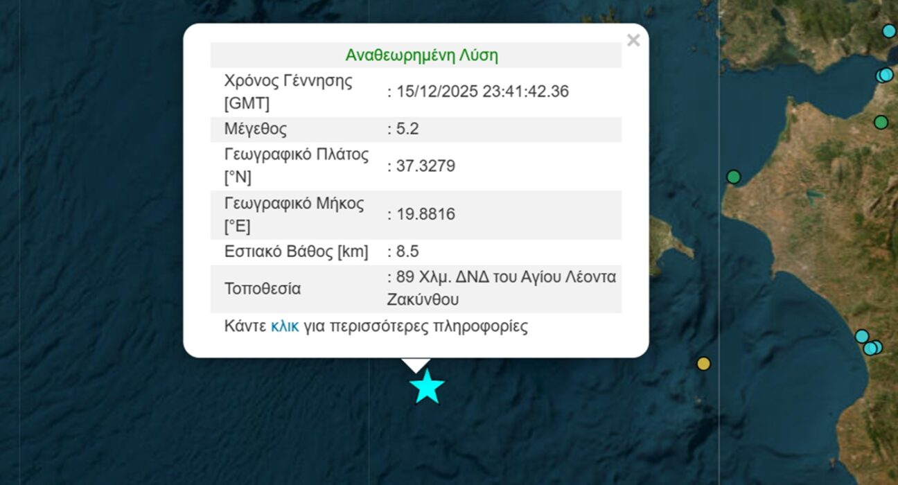 Σεισμός 5,2 Ρίχτερ ανοιχτά της Ζακύνθου