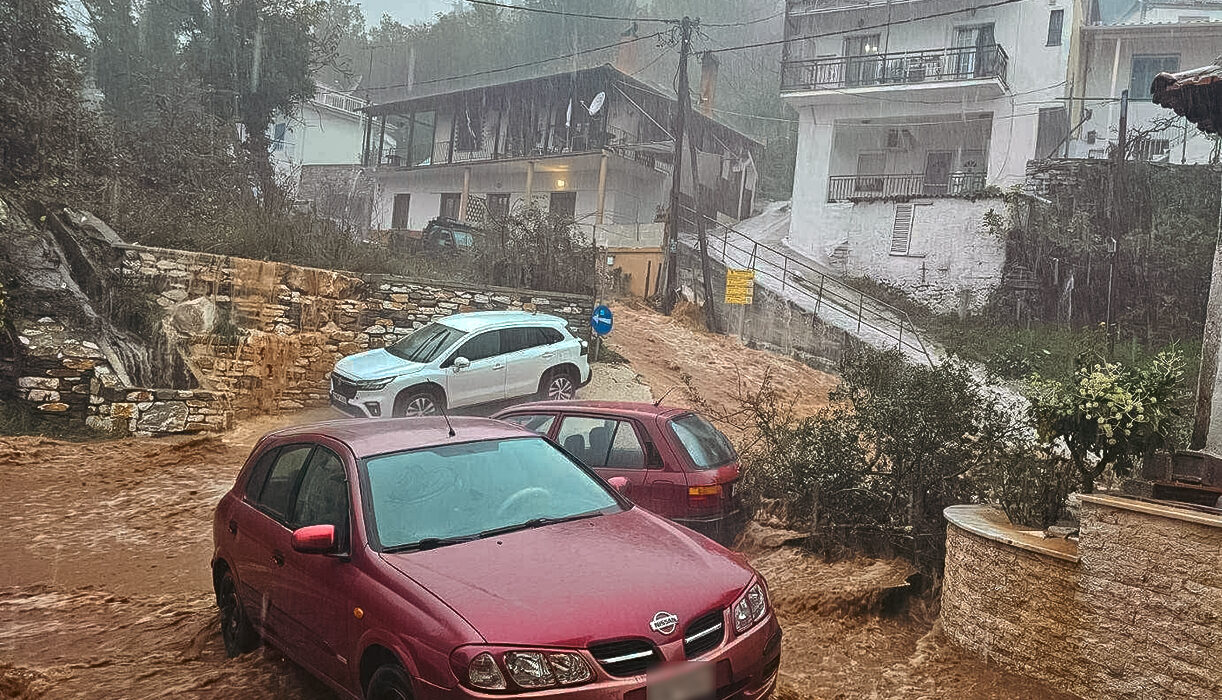 Σοβαρές καταστροφές στη Θάσο από την κακοκαιρία Adel: Δρόμοι-χειμάρροι και αυτοκίνητα που παρασύρθηκαν