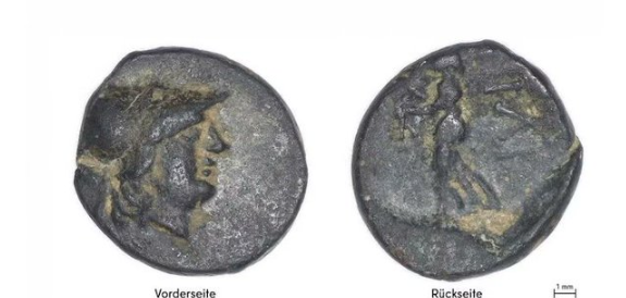 Το χάλκινο νόμισμα χρονολογείται 281–261 π.Χ. και αποδίδεται στο νομισματοκοπείο του Ιλίου (Τροία), ανοίγοντας ερωτήματα για την πορεία του προς τη βόρεια Ευρώπη.