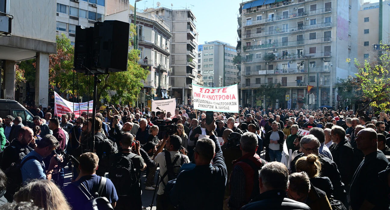 Σε εξέλιξη βρίσκεται αυτή την ώρα η πανελλαδική κινητοποίηση αγροτών και κτηνοτρόφων στην Αθήνα. Οι διαδηλωτές, που συγκεντρώθηκαν από νωρίς το πρωί στην πλατεία Καραϊσκάκη στο Μεταξουργείο, πραγματοποίησαν πορεία διαμαρτυρίας προς το υπουργείο Αγροτικής Ανάπτυξης και Τροφίμων. Πρόκειται για μια «εθνική συγκέντρωση», όπως τη χαρακτήρισε ο πρόεδρος της Εθνικής Ένωσης Αγροτικών Συνεταιρισμών (ΕΘΕΑΣ), Παύλος Σατολιάς, με αγρότες «από την Κρήτη μέχρι τον Έβρο». «Ο αγροτικός κόσμος της χώρας σήμερα διεκδικεί τα δικαιώματά του. Είναι ανεπίτρεπτο, επειδή κάποιοι επιτήδειοι έβαλαν χέρι στα χρήματά μας, να μένουν σε ομηρία και απλήρωτοι 600.000 οικογένειες. Γι’ αυτό έχει δημιουργηθεί μεγάλη ανισορροπία στην τοπική οικονομία στην ύπαιθρο», δήλωσε ο κ. Σατολιάς. Ο πρόεδρος της ΕΘΕΑΣ έκανε λόγο για διπλή αποτυχία της κυβέρνησης: «Δεύτερον, οι ζωονόσοι έχουν εξαπλωθεί και τινάζουν την κτηνοτροφία στα θεμέλια, με τρομερές συνέπειες αν εξελιχθούν. Εδώ η κυβέρνηση και στα δύο αυτά απέτυχε». Οι αγρότες θα επιδώσουν ψήφισμα στον υπουργό και στη συνέχεια θα πραγματοποιήσουν παράσταση διαμαρτυρίας στον ΟΠΕΚΕΠΕ, «γιατί από εκεί […] Σε εξέλιξη βρίσκεται αυτή την ώρα η πανελλαδική κινητοποίηση αγροτών και κτηνοτρόφων στην Αθήνα. Οι διαδηλωτές, που συγκεντρώθηκαν από νωρίς το πρωί στην πλατεία Καραϊσκάκη στο Μεταξουργείο, πραγματοποίησαν πορεία διαμαρτυρίας προς το υπουργείο Αγροτικής Ανάπτυξης και Τροφίμων. Πρόκειται για μια «εθνική συγκέντρωση», όπως τη χαρακτήρισε ο πρόεδρος της Εθνικής Ένωσης Αγροτικών Συνεταιρισμών (ΕΘΕΑΣ), Παύλος Σατολιάς, με αγρότες «από την Κρήτη μέχρι τον Έβρο». «Ο αγροτικός κόσμος της χώρας σήμερα διεκδικεί τα δικαιώματά του. Είναι ανεπίτρεπτο, επειδή κάποιοι επιτήδειοι έβαλαν χέρι στα χρήματά μας, να μένουν σε ομηρία και απλήρωτοι 600.000 οικογένειες. Γι’ αυτό έχει δημιουργηθεί μεγάλη ανισορροπία στην τοπική οικονομία στην ύπαιθρο», δήλωσε ο κ. Σατολιάς. Ο πρόεδρος της ΕΘΕΑΣ έκανε λόγο για διπλή αποτυχία της κυβέρνησης: «Δεύτερον, οι ζωονόσοι έχουν εξαπλωθεί και τινάζουν την κτηνοτροφία στα θεμέλια, με τρομερές συνέπειες αν εξελιχθούν. Εδώ η κυβέρνηση και στα δύο αυτά απέτυχε». Οι αγρότες θα επιδώσουν ψήφισμα στον υπουργό και στη συνέχεια θα πραγματοποιήσουν παράσταση διαμαρτυρίας στον ΟΠΕΚΕΠΕ, «γιατί από εκεί ΕΛΛΑΔΑ, αγρότες, ΟΠΕΚΕΠΕ, συγκέντρωση