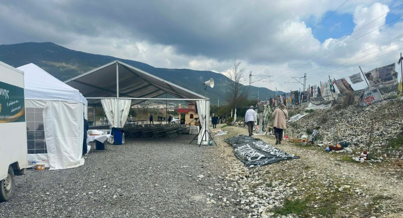 Συγγενείς των θυμάτων του δυστυχήματος των Τεμπών συγκεντρώνονται στο σημείο της τραγωδίας