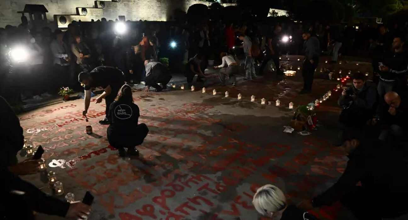 Με μια δράση κορυφώθηκε η αποψινή συγκέντρωση για την τραγωδία στα Τέμπη στο Σύνταγμα, με συγγενείς των θυμάτων να γράφουν ξανά τα ονόματα, με κόκκινη μπογιά, μπροστά από τη Βουλή. Οι συγκεντρωμένοι ζήτησαν από τον κόσμο να παραμείνει στο σημείο υπό τον φόβο μιας αστυνομικής επέμβασης. Παρά ταύτα, οι αστυνομικές δυνάμεις βρέθηκαν σε απόσταση και κράτησαν διακριτική στάση. Παρούσα στη συγκέντρωση, στο πλευρό του Πάνου Ρούτσι και των άλλων συγγενών των θυμάτων των Τεμπών, ήταν και η Ζωή Κωνσταντοπούλου. Με μια δράση κορυφώθηκε η αποψινή συγκέντρωση για την τραγωδία στα Τέμπη στο Σύνταγμα, με συγγενείς των θυμάτων να γράφουν ξανά τα ονόματα, με κόκκινη μπογιά, μπροστά από τη Βουλή. Οι συγκεντρωμένοι ζήτησαν από τον κόσμο να παραμείνει στο σημείο υπό τον φόβο μιας αστυνομικής επέμβασης. Παρά ταύτα, οι αστυνομικές δυνάμεις βρέθηκαν σε απόσταση και κράτησαν διακριτική στάση. Παρούσα στη συγκέντρωση, στο πλευρό του Πάνου Ρούτσι και των άλλων συγγενών των θυμάτων των Τεμπών, ήταν και η Ζωή Κωνσταντοπούλου. ΕΛΛΑΔΑ, Βουλή, συγγενείς, Σύνταγμα, Τέμπη