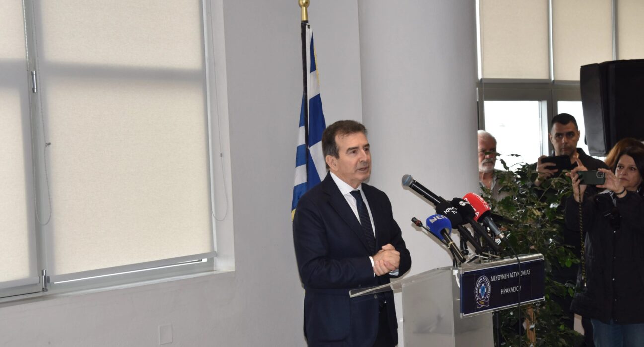 Κεντρικό μήνυμα περί εμπέδωσης της ασφάλειας στην Κρήτη, τόσο για τους κατοίκους όσο και τα εκατομμύρια των επισκεπτών της, αλλά και τη διαβεβαίωση ότι «εδώ υπάρχει κράτος, υπάρχει τάξη, υπάρχει νόμος», έστειλε ο υπουργός Προστασίας του Πολίτη, Μιχάλης Χρυσοχοΐδης, από τα εγκαίνια της λέσχης σίτισης της διεύθυνσης Αστυνομίας Ηρακλείου. «Η μάχη την οποία δίνουμε δεν έχει ούτε χρώματα, ούτε κομματική διάσταση. Η μάχη έχει μόνο ένα στόχο, να μπορεί ο κάθε πολίτης να λέει είμαι από την Κρήτη, ζω στην Κρήτη, ή επισκέφτηκα την Κρήτη και αισθάνθηκα απόλυτα ασφαλής» είπε χαρακτηριστικά ο υπουργός.