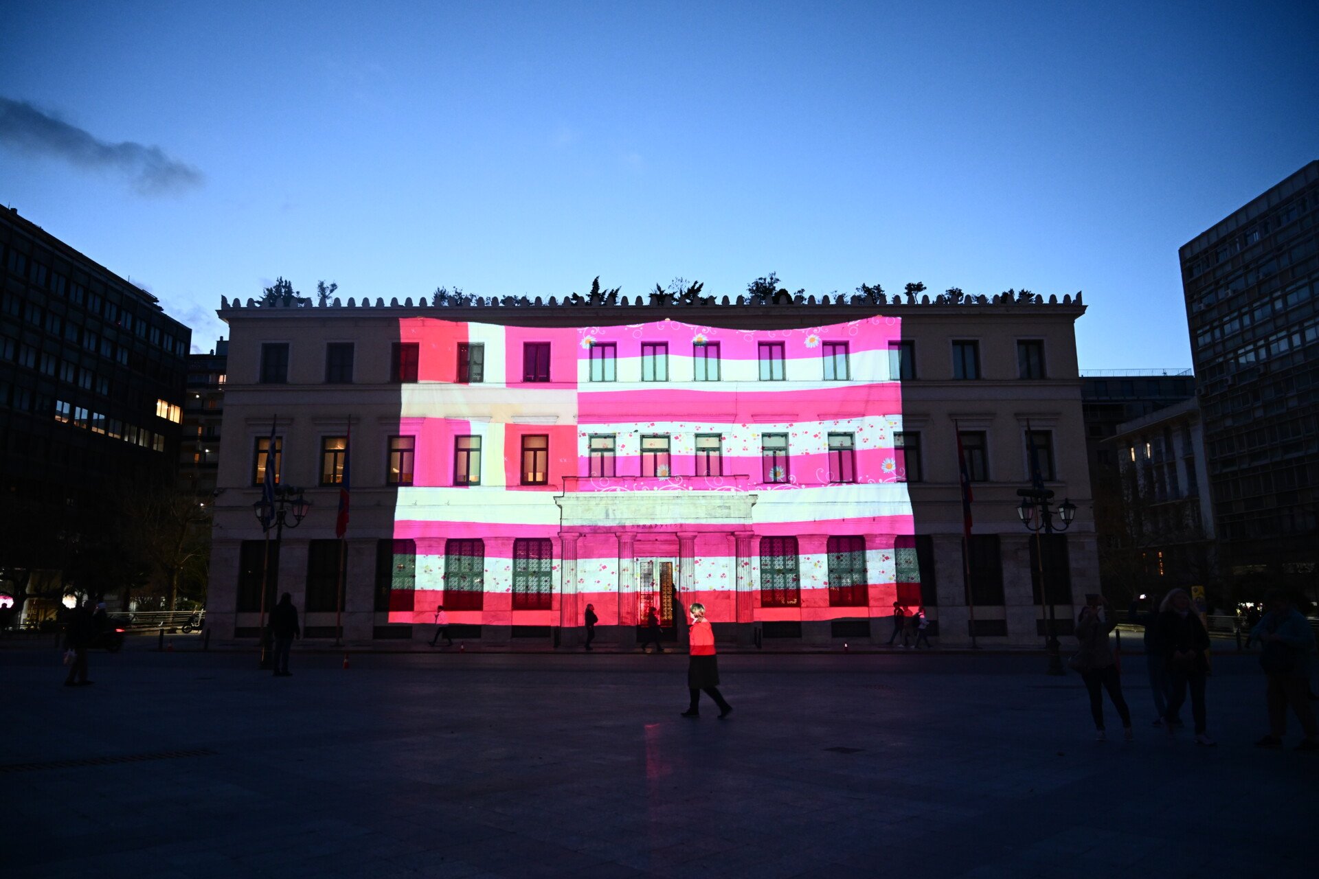 Δημαρχείο Αθήνας: «Ντύθηκε» με την ροζ ελληνική σημαία της Γεωργίας...