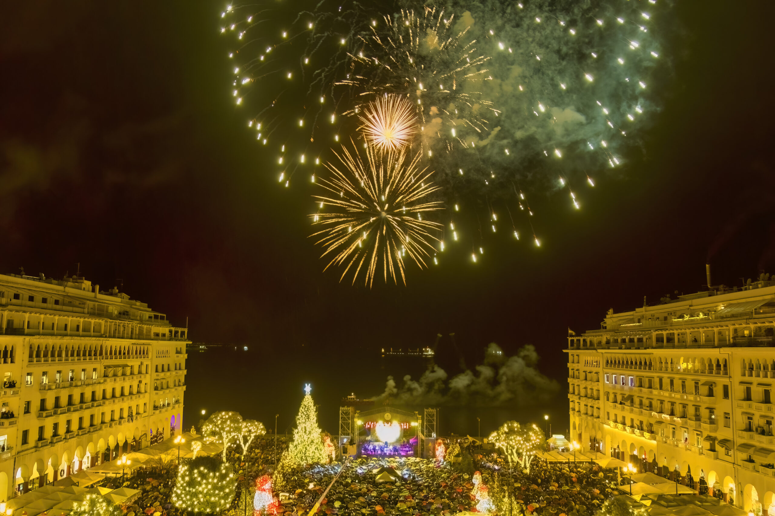 Φωταγωγήθηκε το χριστουγεννιάτικο δέντρο στην πλατεία Αριστοτέλους στη Θεσσαλονίκη