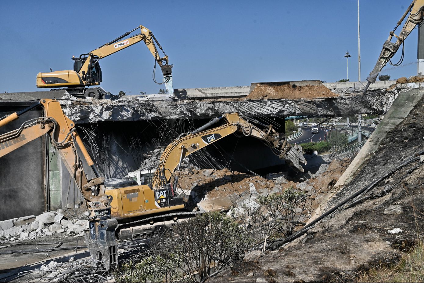 Φωτογραφίες από την κατεδάφιση της γέφυρας στον Ισθμό μετά την...