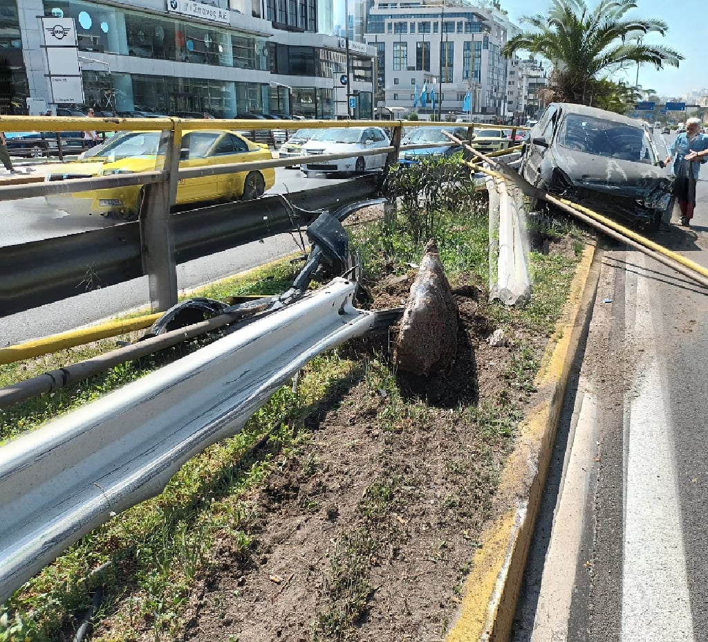 Τροχαίο στη Συγγρού: Αυτοκίνητο έπεσε στο διάζωμα (φωτο)