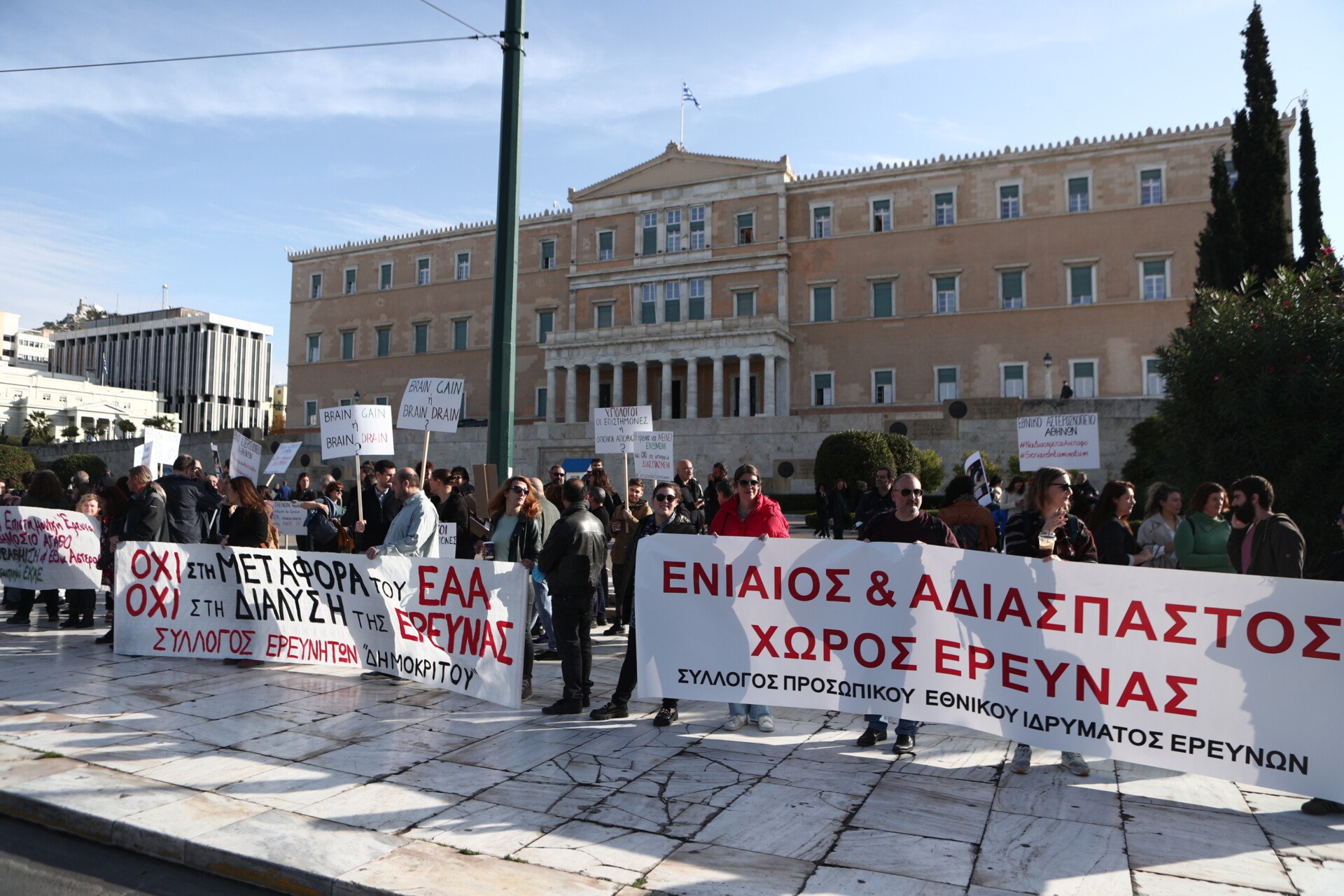 Διαμαρτυρία των ερευνητών και του προσωπικού του Εθνικού Αστεροσκοπείου έξω...