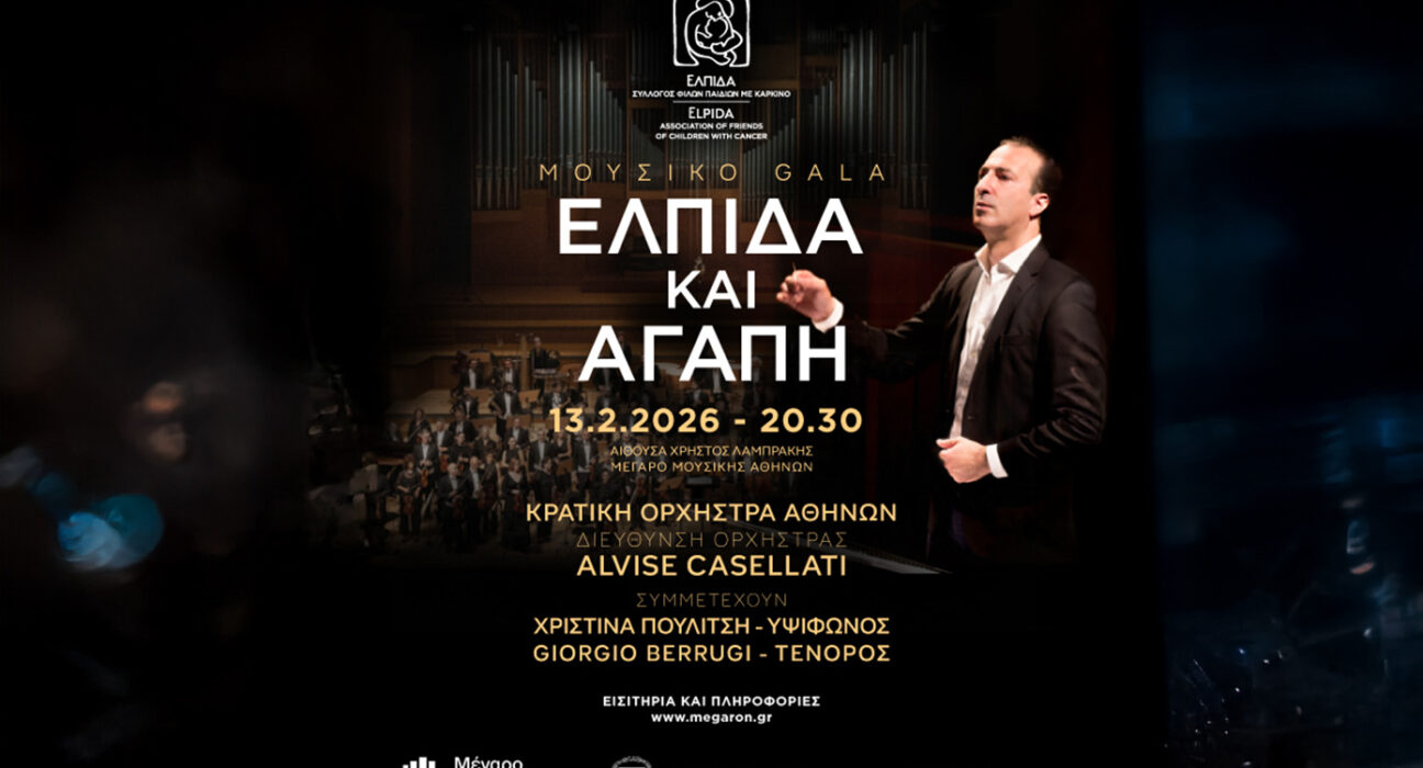 Ένα μοναδικό μουσικό γκαλά διοργανώνεται από το σωματείο «ΕΛΠΙΔΑ – Σύλλογος Παιδιών με καρκίνο» σε συνεργασία με το Μέγαρο Μουσικής Αθηνών και την Κρατική Ορχήστρα Αθηνών στις 13 Φεβρουαρίου στην αίθουσα «Χρήστος Λαμπράκης». Ο διεθνούς φήμης κορυφαίος μαέστρος και Καλλιτεχνικός Διευθυντής του Teatro Massimo του Παλέρμο, Alvise Casellati που εμφανίζεται για πρώτη φορά στην Ελλάδα, ενώνει τις δυνάμεις του, με την Κρατική Ορχήστρα Αθηνών δημιουργώντας ένα εμπνευσμένο, υψηλού επιπέδου πρόγραμμα, ύμνο στην αγάπη, με διάσημες άριες από αγαπημένες όπερες των Βέρντι, Πουτσίνι, Γκουνό, Βάγκνερ και Ροσσίνι. Μαζί του και η διεθνώς καταξιωμένη Ελληνίδα υψίφωνος Χριστίνα Πουλίτση και ο διακεκριμένος Ιταλός τενόρος Giorgio Berrugi θα συνοδεύσουν με τις φωνές τους αυτό το μοναδικό μουσικό ταξίδι στην κλασική μουσική. Σε μια βραδιά όπου η δύναμη της μουσικής συναντά την προσφορά και μετατρέπεται σε πράξη αγάπης και στήριξης για τα παιδιά που δίνουν τον δικό τους αγώνα ζωής, καθώς όλα τα έσοδα της παράστασης θα διατεθούν για τη στήριξη των σκοπών του σωματείου […] Ένα μοναδικό μουσικό γκαλά διοργανώνεται από το σωματείο «ΕΛΠΙΔΑ – Σύλλογος Παιδιών με καρκίνο» σε συνεργασία με το Μέγαρο Μουσικής Αθηνών και την Κρατική Ορχήστρα Αθηνών στις 13 Φεβρουαρίου στην αίθουσα «Χρήστος Λαμπράκης». Ο διεθνούς φήμης κορυφαίος μαέστρος και Καλλιτεχνικός Διευθυντής του Teatro Massimo του Παλέρμο, Alvise Casellati που εμφανίζεται για πρώτη φορά στην Ελλάδα, ενώνει τις δυνάμεις του, με την Κρατική Ορχήστρα Αθηνών δημιουργώντας ένα εμπνευσμένο, υψηλού επιπέδου πρόγραμμα, ύμνο στην αγάπη, με διάσημες άριες από αγαπημένες όπερες των Βέρντι, Πουτσίνι, Γκουνό, Βάγκνερ και Ροσσίνι. Μαζί του και η διεθνώς καταξιωμένη Ελληνίδα υψίφωνος Χριστίνα Πουλίτση και ο διακεκριμένος Ιταλός τενόρος Giorgio Berrugi θα συνοδεύσουν με τις φωνές τους αυτό το μοναδικό μουσικό ταξίδι στην κλασική μουσική. Σε μια βραδιά όπου η δύναμη της μουσικής συναντά την προσφορά και μετατρέπεται σε πράξη αγάπης και στήριξης για τα παιδιά που δίνουν τον δικό τους αγώνα ζωής, καθώς όλα τα έσοδα της παράστασης θα διατεθούν για τη στήριξη των σκοπών του σωματείου ΕΛΛΑΔΑ, Μέγαρο Μουσικής Αθηνών, σύλλογος Ελπίδα