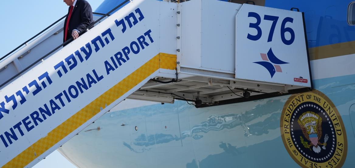Ο Τραμπ έφτασε στο αεροδρόμιο Μπεν Γκουριόν του Τελ Αβίβ όπου τον υποδέχθηκαν ο πρόεδρος του Ισραήλ Ισαάκ Χέρτζογκ και ο Ισραηλινός πρωθυπουργός Μπενιαμίν Νετανιάχου.